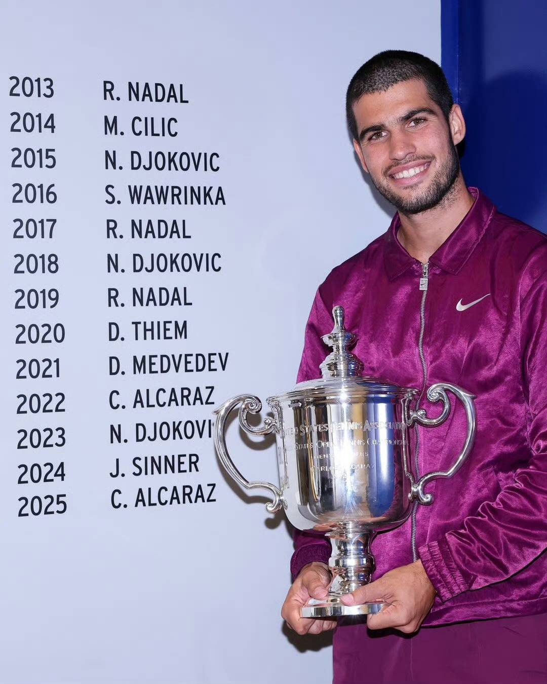 尽管以伤病结束了2025赛季,阿尔卡拉斯今年仍取得了卓越成就。他不仅确保了年终世界第一的排名,还赢得了八个冠军头衔,包括法国公开赛和美国公开赛。此外,他还获得了三个1000级别大师赛冠军(蒙特卡洛、罗马和辛辛那提)以及三个ATP500赛事冠军(鹿特丹、女王杯和东京)。阿尔卡拉斯在2025年创造了71胜9负的巡回赛战绩,这是他职业生涯中最好的一个赛季。
