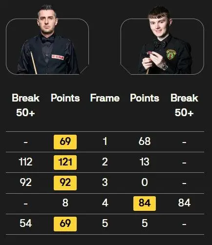 虎扑12月17日讯 在2025斯诺克苏格兰公开赛64进32轮次比赛中,马克-塞尔比以4-1战胜罗比-麦圭根,晋级下一轮。