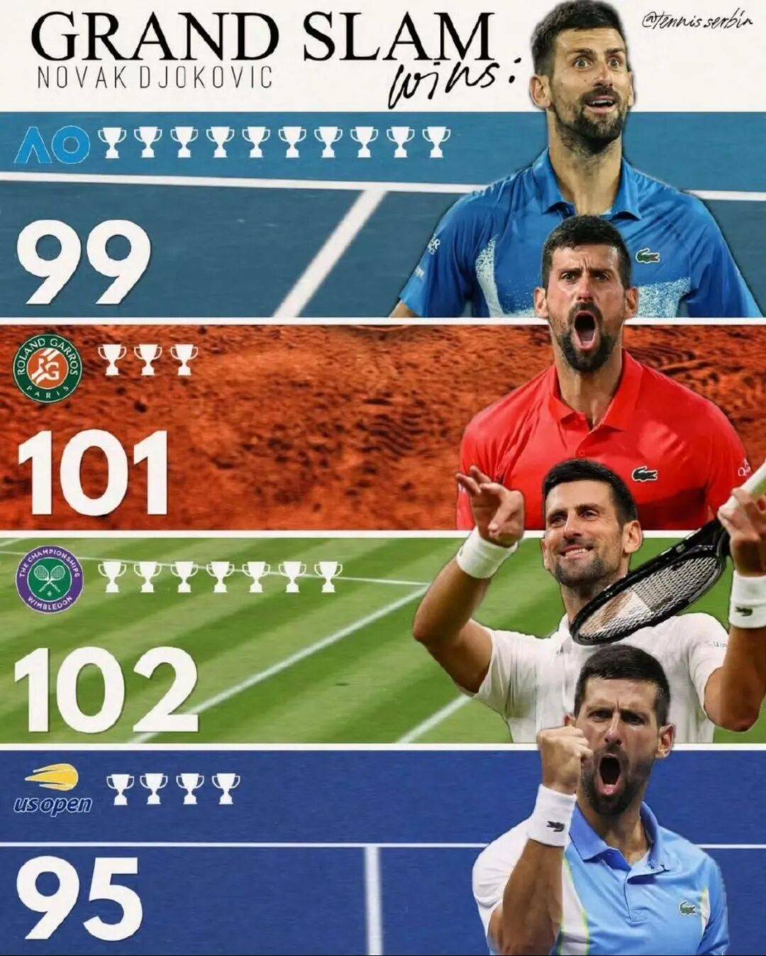 德约目前在美网累计95胜,只需再赢5场便能达成百胜成就,而这恰好对应着打进四强的赛程。作为四届美网冠军得主,他在法拉盛公园有着深厚的底蕴,2023年还曾在此夺冠。2026年美网前,他可通过选择性参加辛辛那提大师赛调整状态,凭借丰富的大满贯作战经验和精细化的体能管理(新增专项体能教练保障),突破四强、解锁百胜的难度并不大,更能让他成为史上唯一在四大满贯均达成100+胜场的球员。