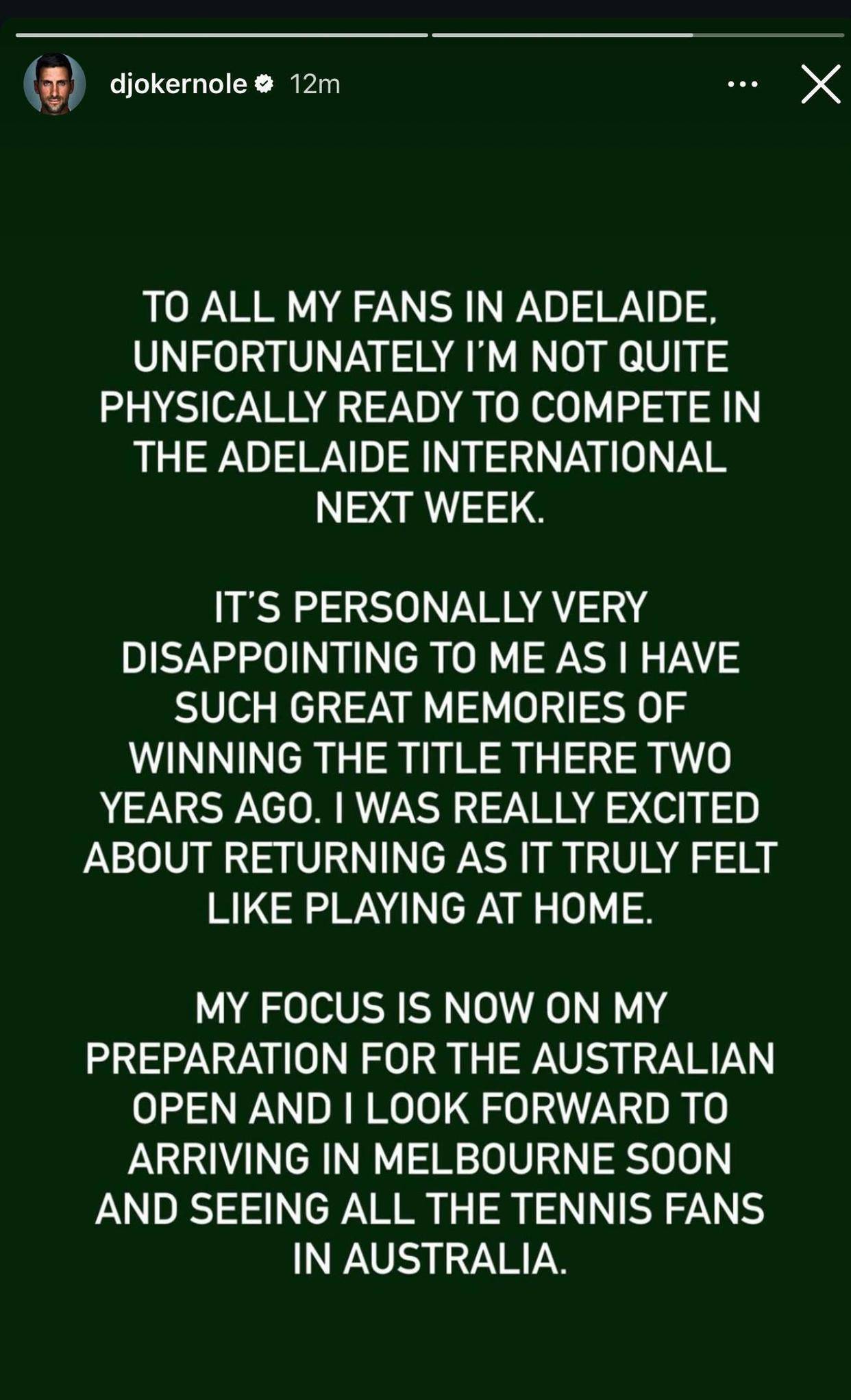 但你们知道最让我心里不是滋味的是什么吗? 他退赛声明里写的那段话。 他说阿德莱德对他“就像主场一样”,三年前在那儿夺冠的记忆特别美好。 明明那么喜欢、那么期待回去,最后却因为“身体没准备好”去不了。 这话从一个战神嘴里说出来,听着真有点心酸。 他上一次打正式比赛,还是去年11月初在雅典,之后就因为肩伤歇了,算下来都快两个月没比赛了。 看来,岁月这把刀,对谁都不留情啊。