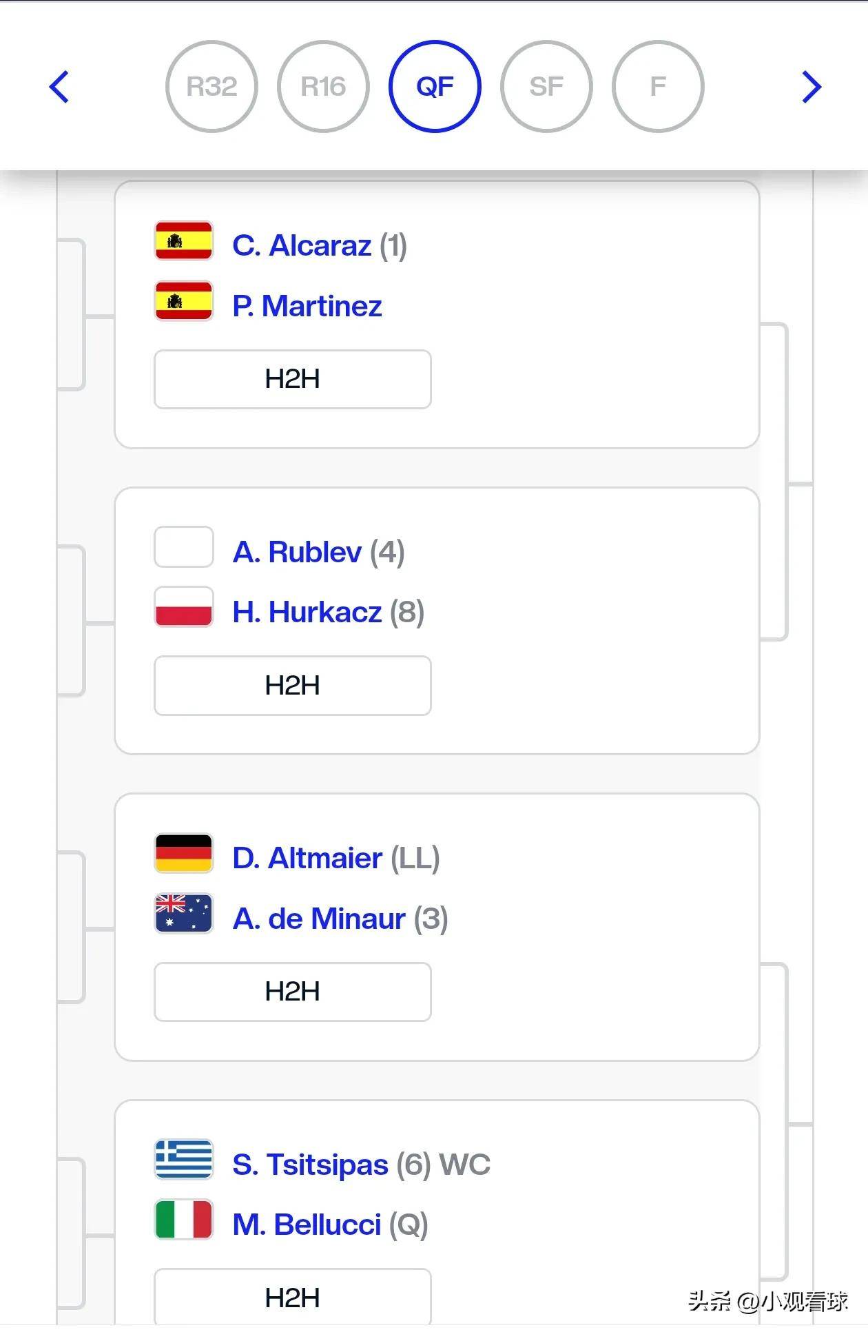 七号种子菲尔斯三盘苦战,4-6/6-3/5-7不敌德国选手阿尔特迈尔。幸运落败者阿尔特迈尔晋级八强。