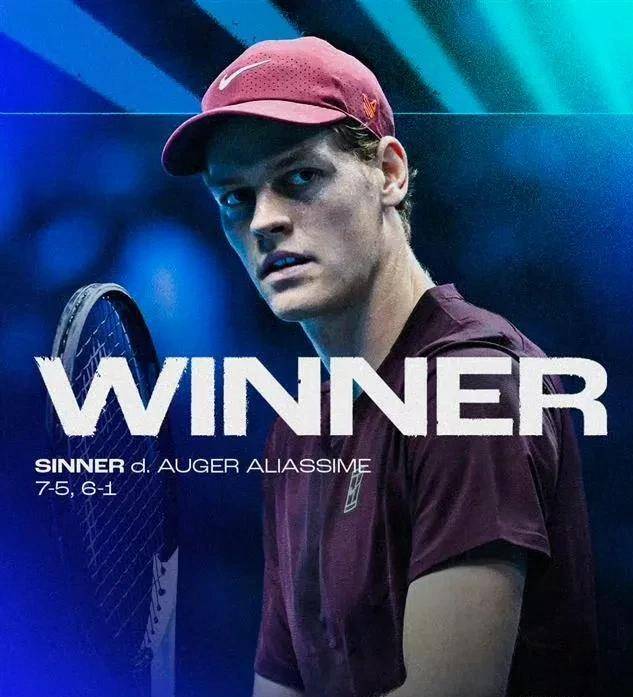 卫冕冠军辛纳延续了他的火热状态,以7-5、6-1击败8号种子阿利亚西姆,本赛季对后者保持四战全胜,豪取室内硬地27连胜和赛会11连胜。