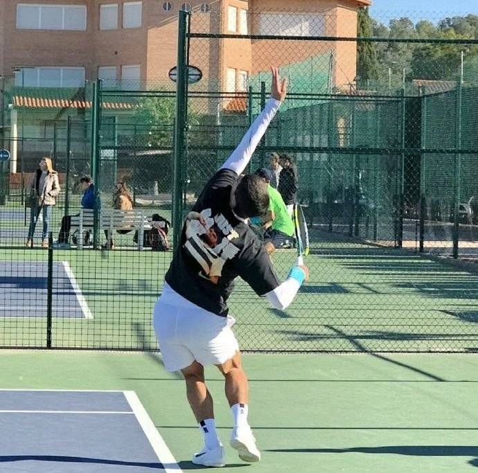 最后来猜一猜认一认。下面这张图片是一位球员在练习发球。不作提示,您能认出他是谁吗?