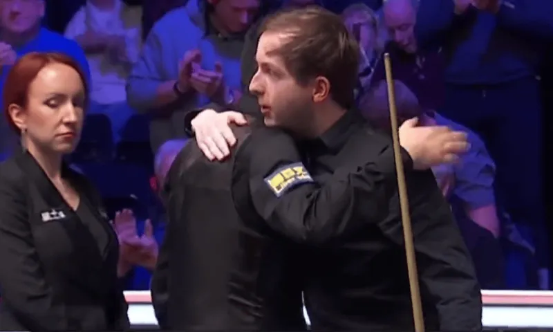 虎扑12月05日讯 据WST官方消息,在2025斯诺克英锦赛中,丁俊晖以6-5险胜斯科特-唐纳森;在打进最后一颗红球之后,两人相拥在一起,收获了全场观众的起立鼓掌。
