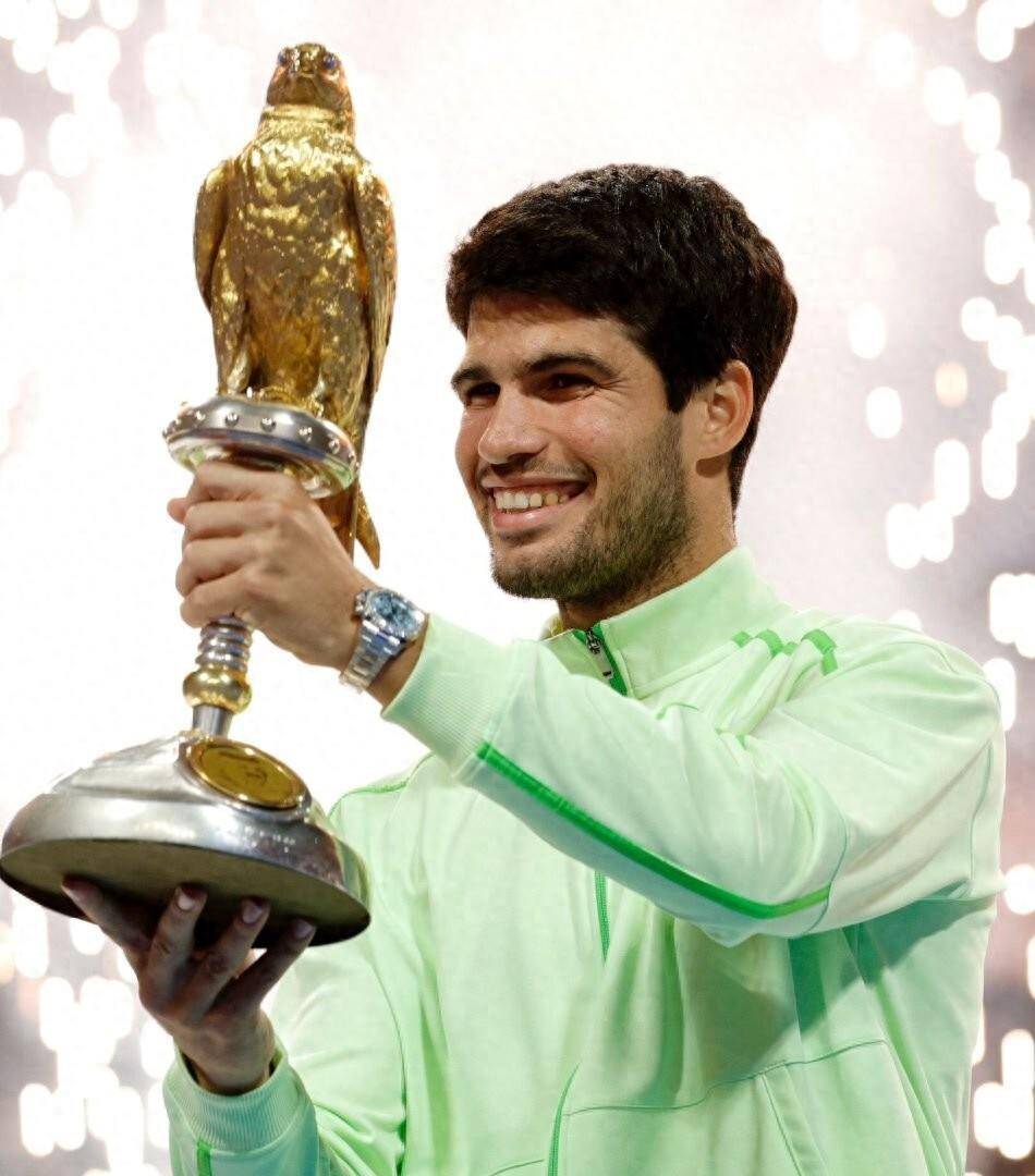 这场决赛也是阿尔卡拉斯本赛季夺得的第二座冠军奖杯。 一个月前,他在墨尔本历经五盘鏖战,逆转击败了24届大满贯得主德约科维奇,首次加冕澳网冠军。 那场胜利让他以22岁272天的年龄,成为网球公开赛年代最年轻的全满贯得主,打破了尘封数十年的纪录。 带着澳网冠军的余威来到多哈,阿尔卡拉斯的晋级之路也并非一帆风顺。 首轮对阵法国选手林德克内希,他在第二盘挽救两个盘点才通过抢七惊险取胜。